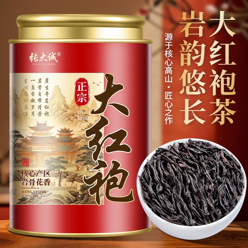 张大诚茗茶大红袍武夷新茶乌龙茶岩茶茶叶浓香型散茶罐装125g