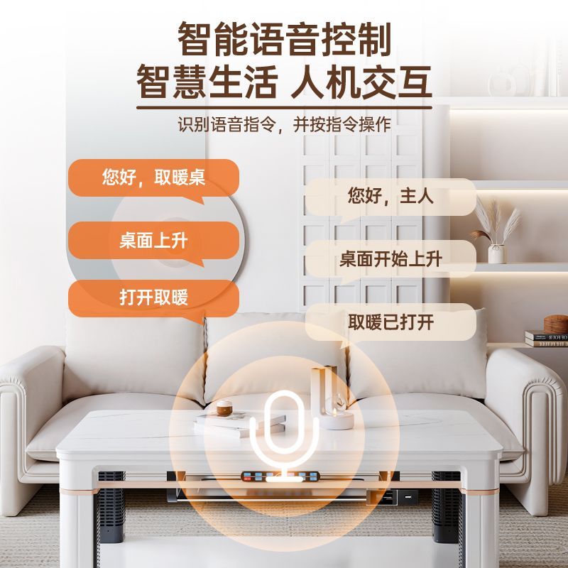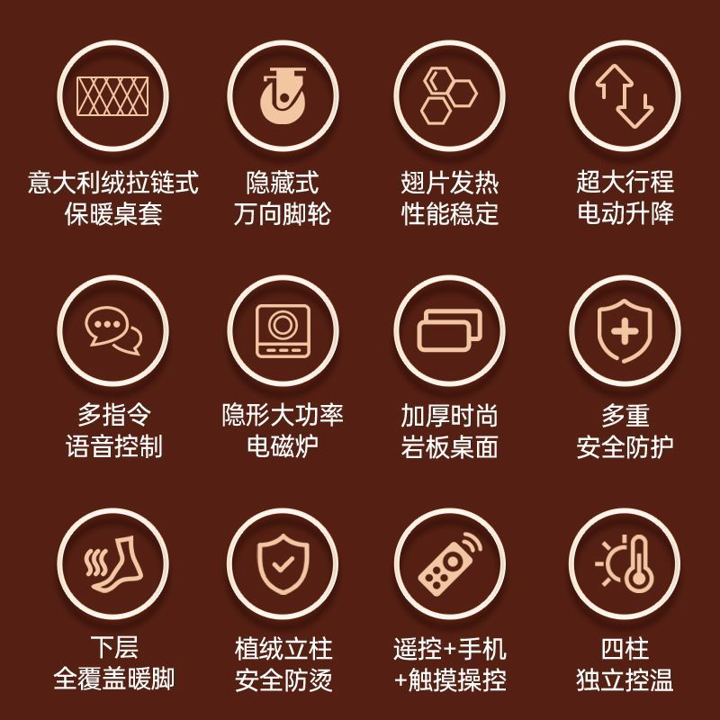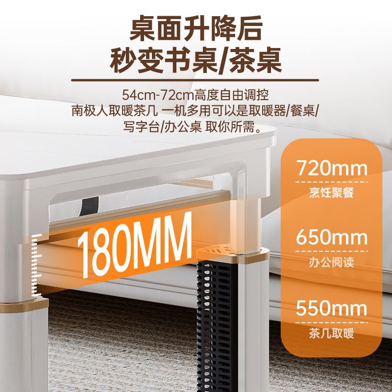 南极人升降电热取暖桌岩板茶几智能电暖桌电烤炉取暖烤火桌客厅