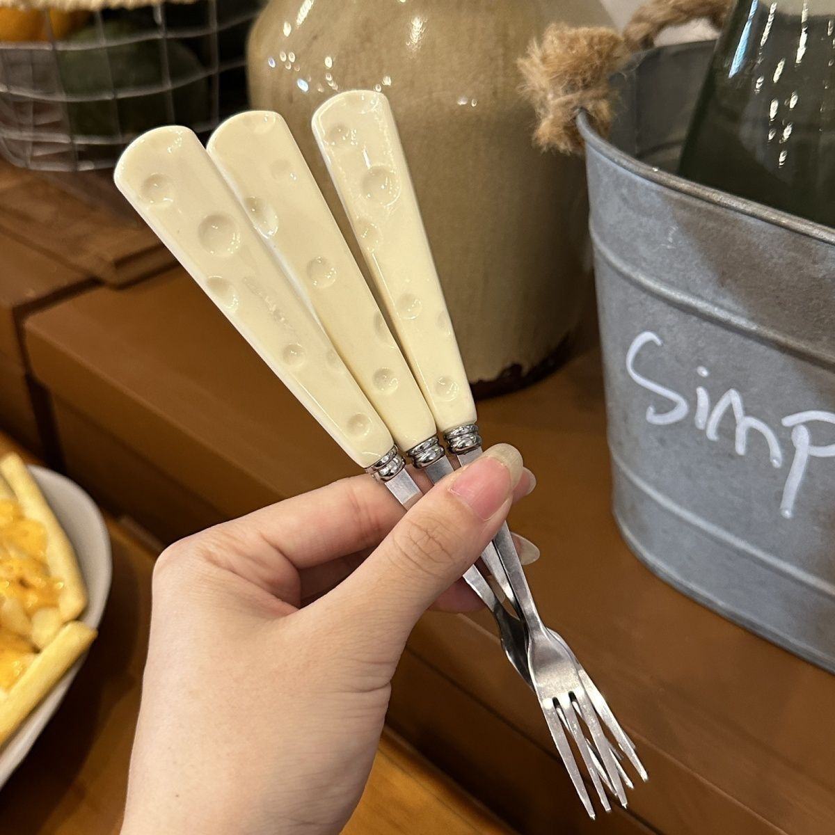 4支】不锈钢水果叉可爱奶酪甜品叉创意蛋糕月饼叉家用高档水果签