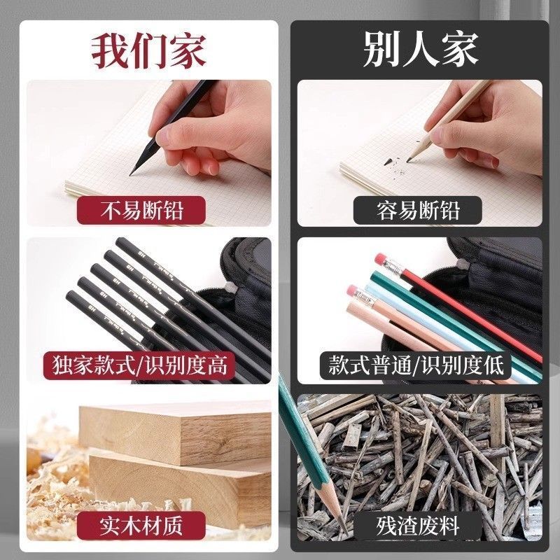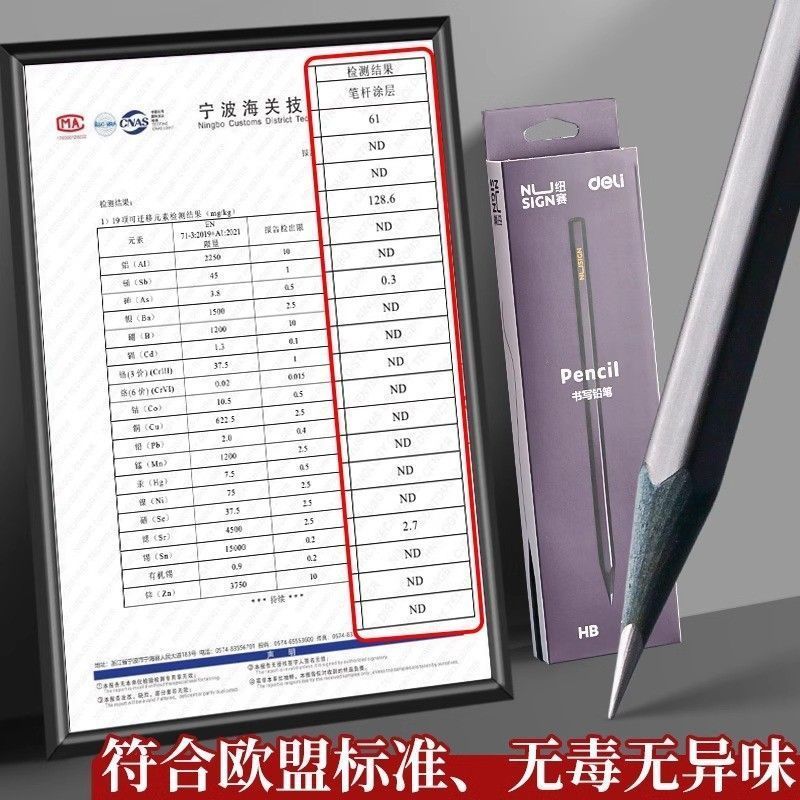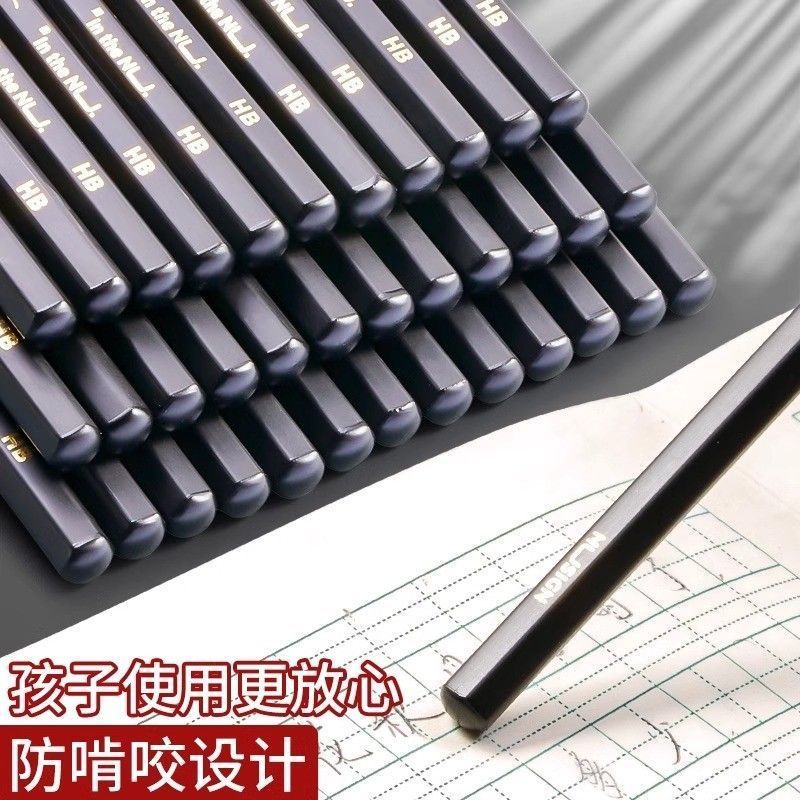 得力纽赛黑木HB铅笔小学生一二年级专用考试铅笔无铅毒无味练字笔