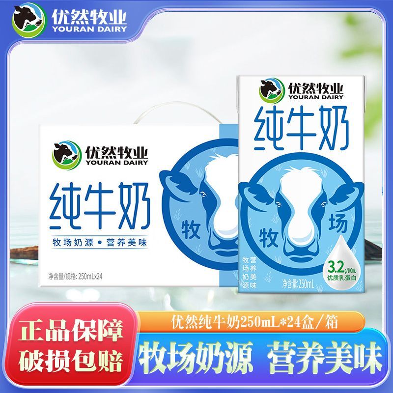4月产 优然牧业纯牛奶24盒250ml纯牛奶家庭早餐搭档整箱送礼