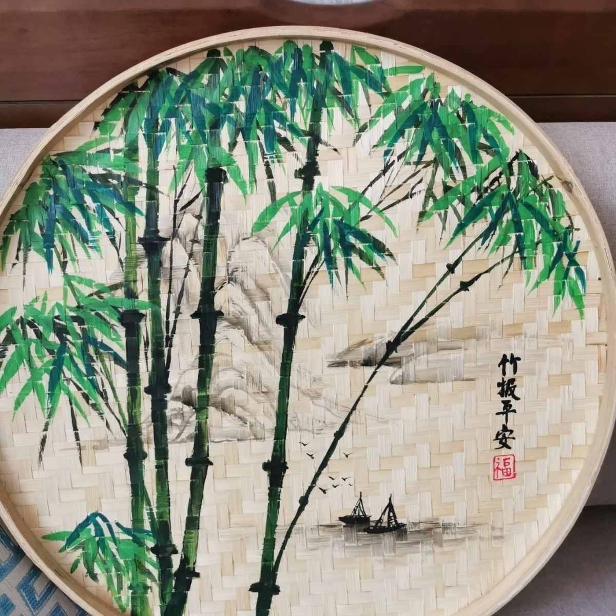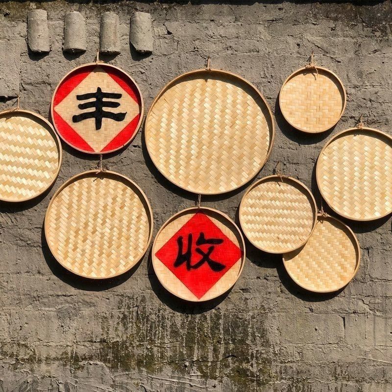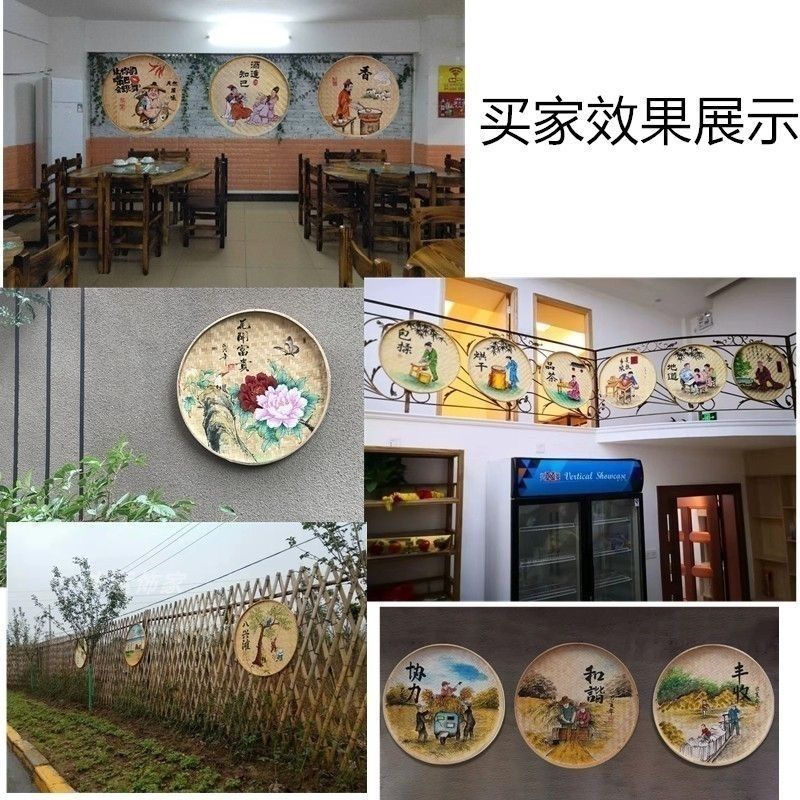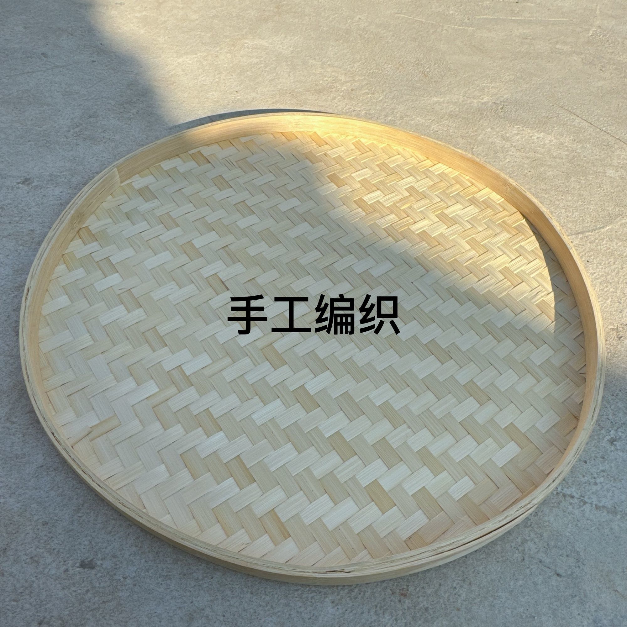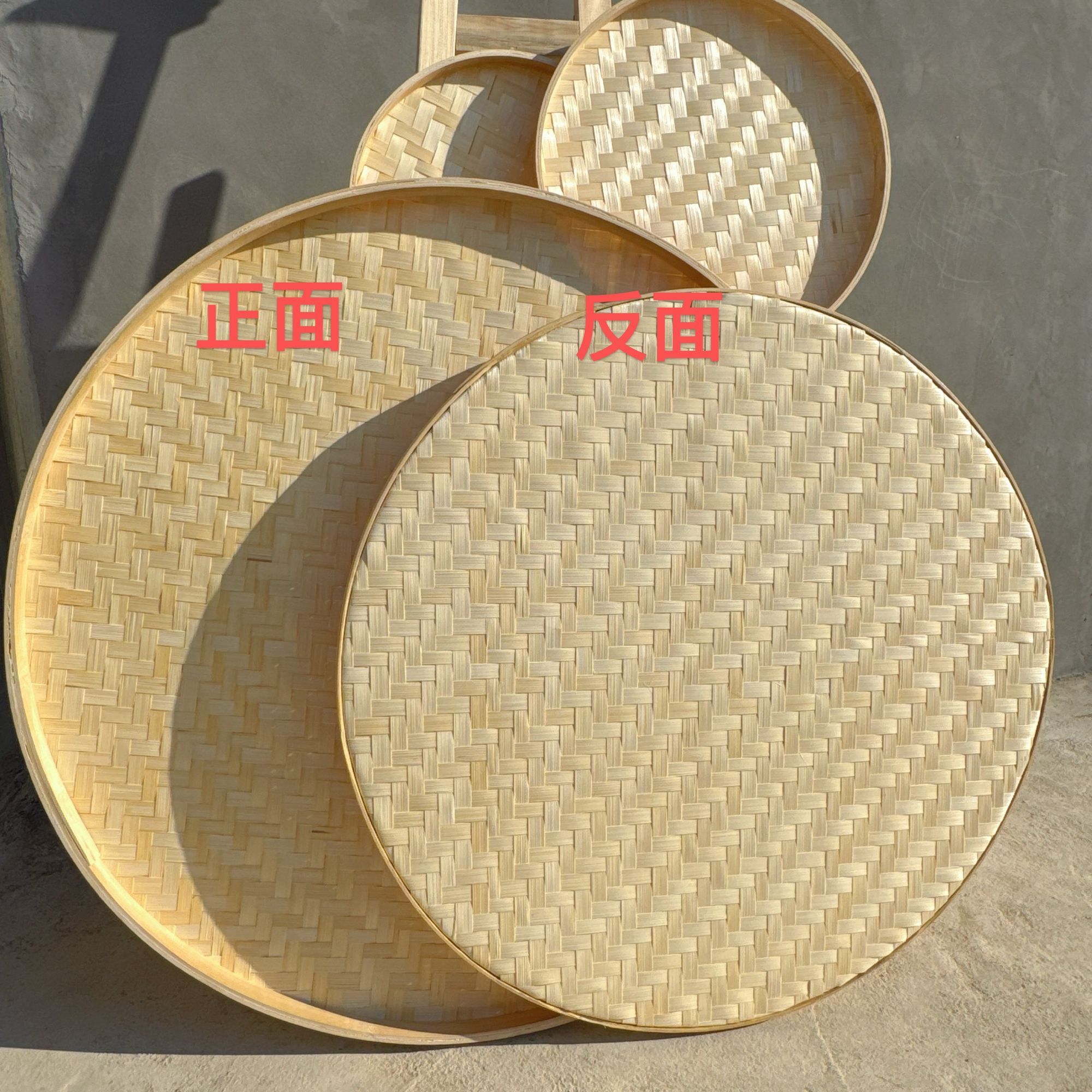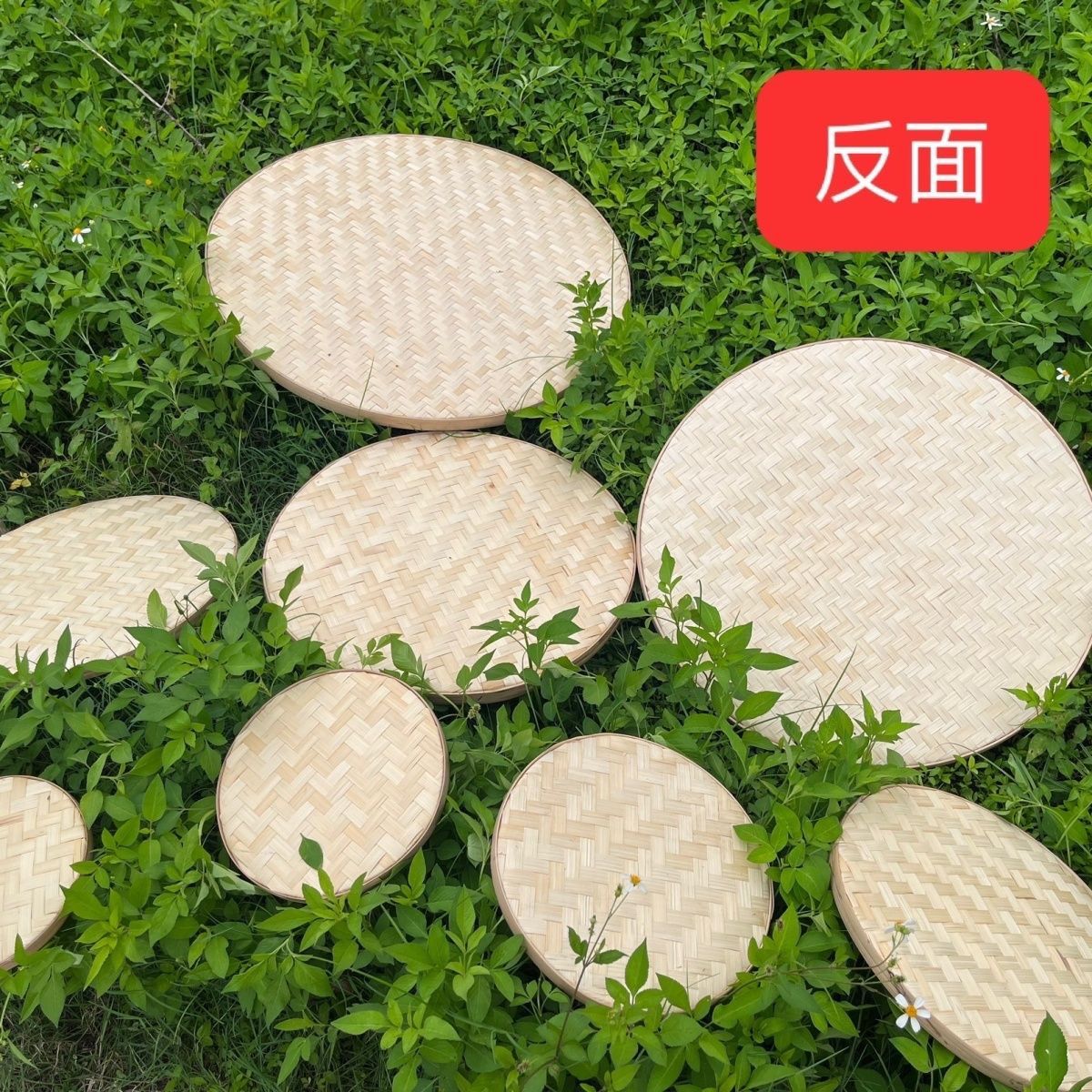 手工编织竹制品圆形无孔家用农村簸箕绘画装饰晾晒筛子竹编晾晒盘