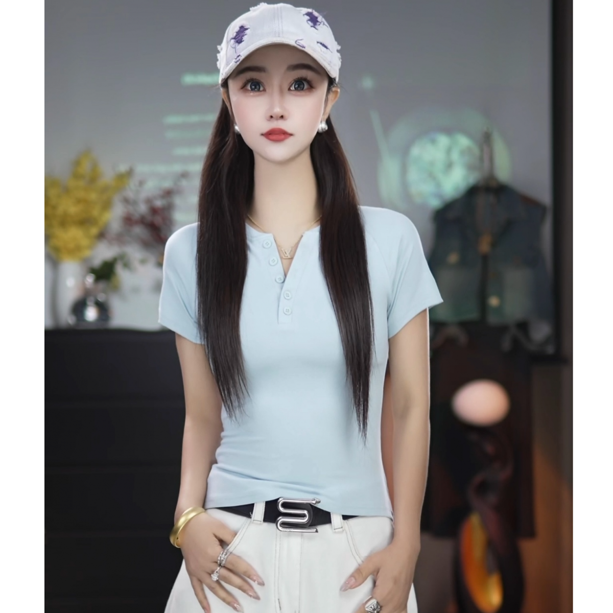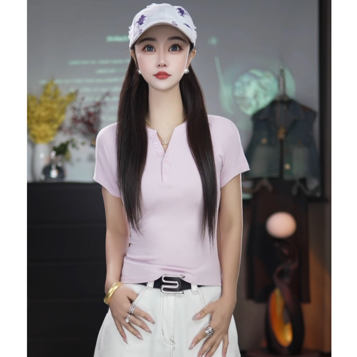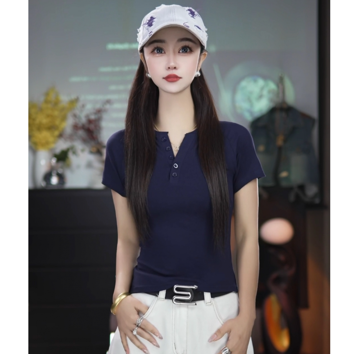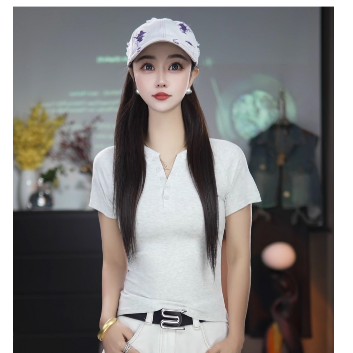 2026春夏新款排扣V领百搭小众设计感显瘦高腰纯欲纯色女针织修身