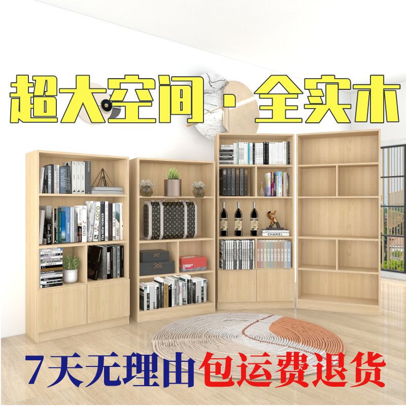 实木书柜书架组合落地靠墙儿童置物储物多层带门初高中生学生飘窗