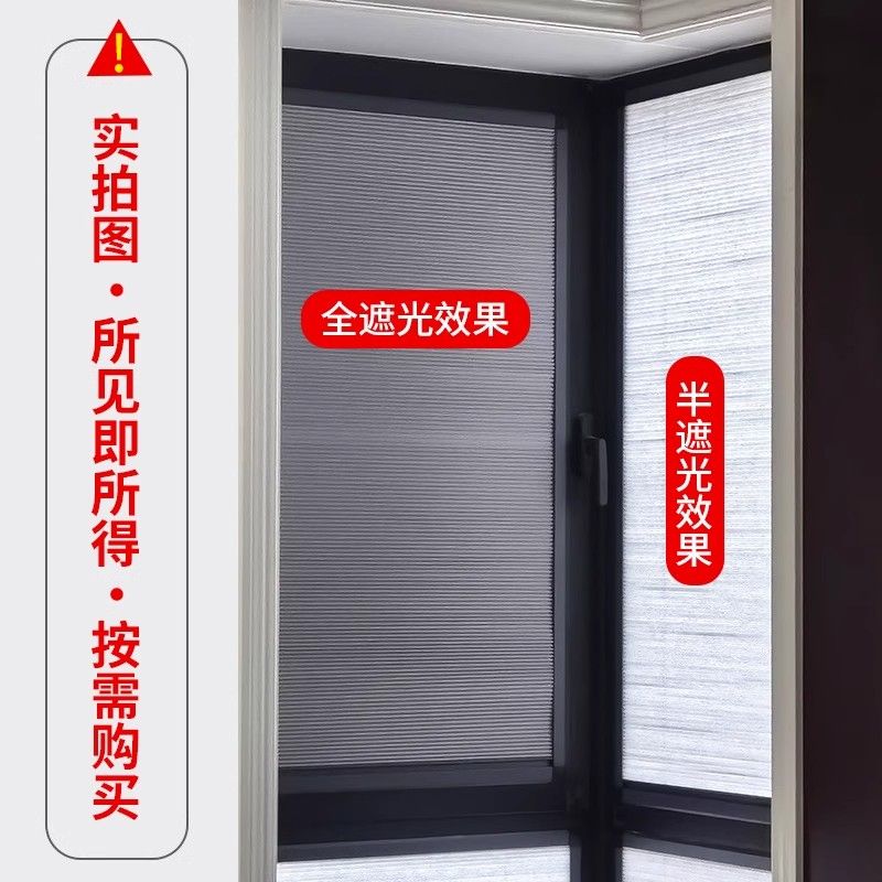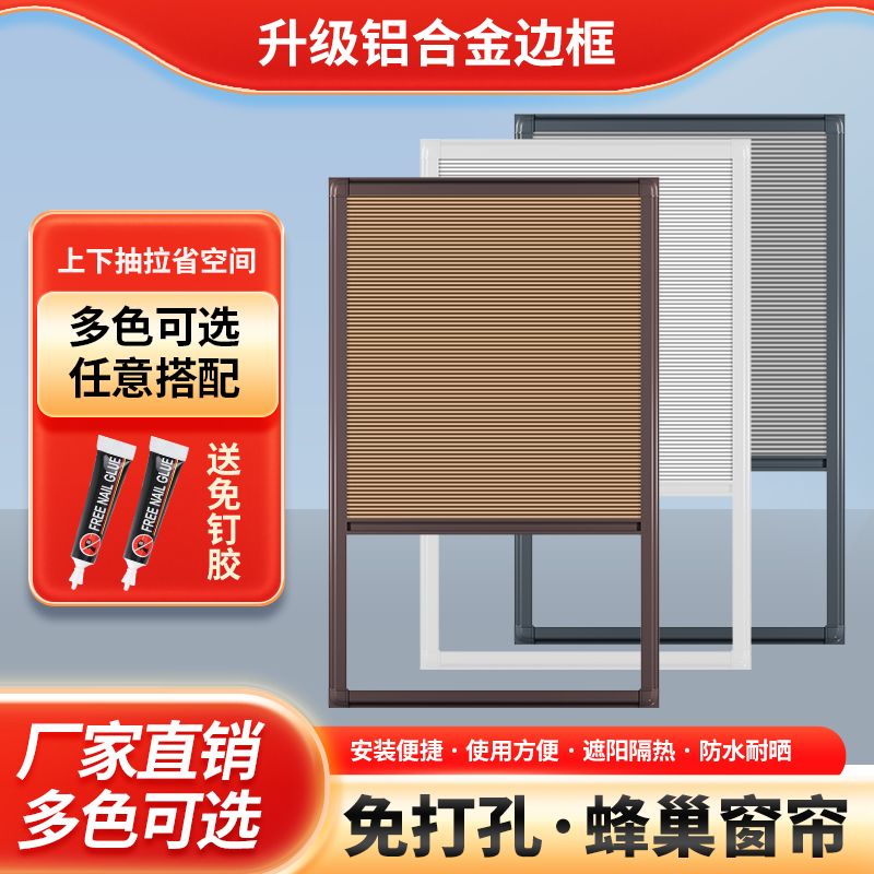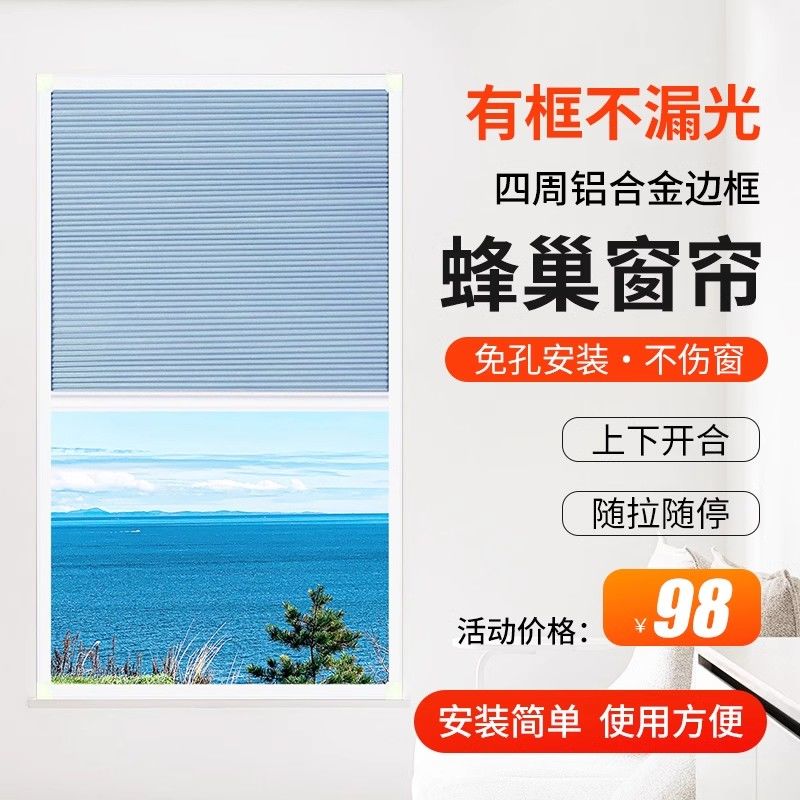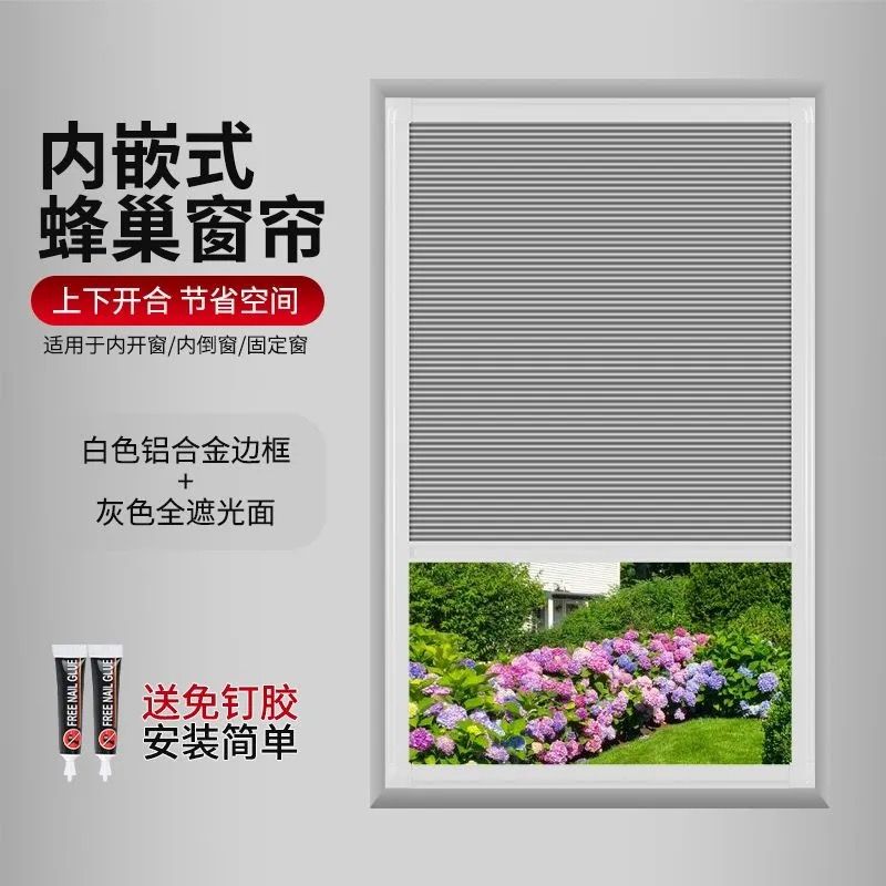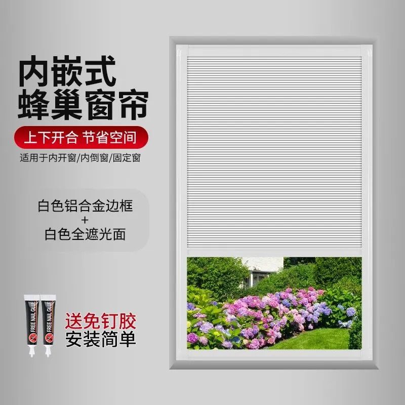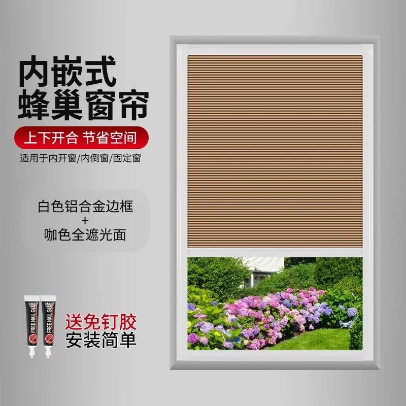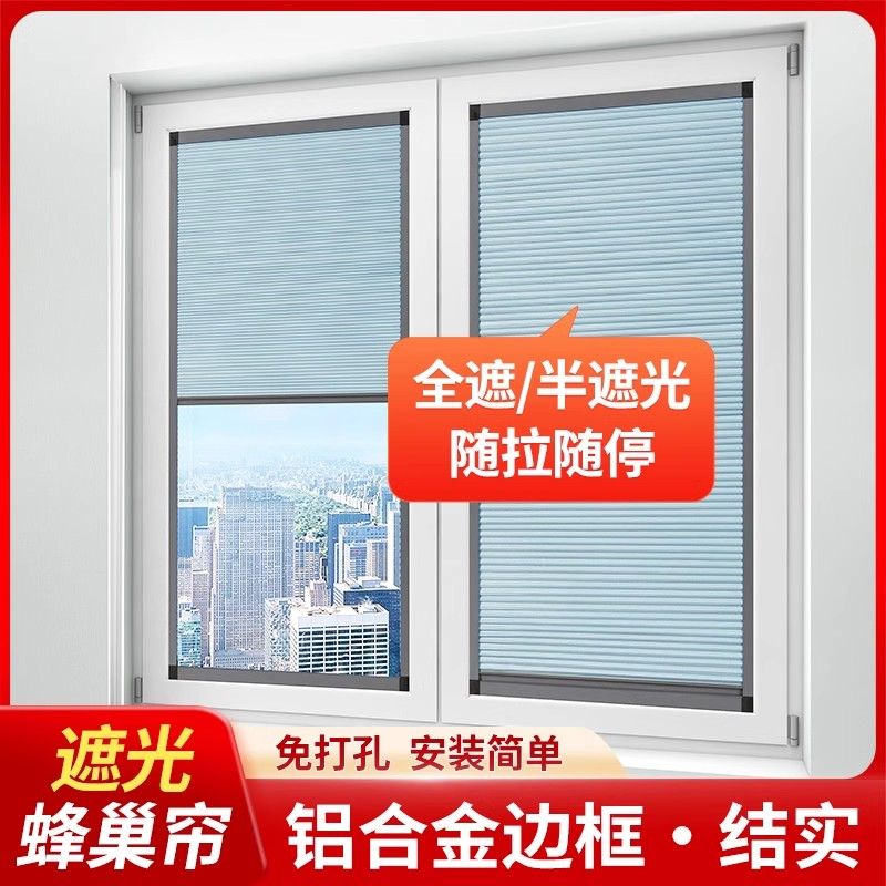 免打孔新款内开窗遮光百叶窗帘卫生间厨房卷帘内嵌内置窗户蜂巢帘