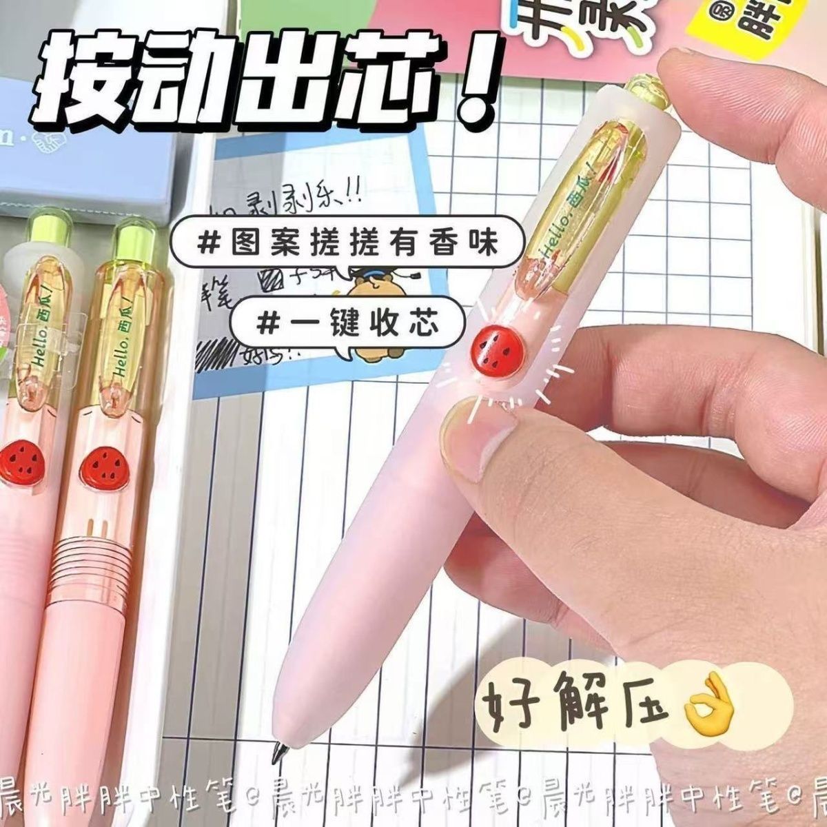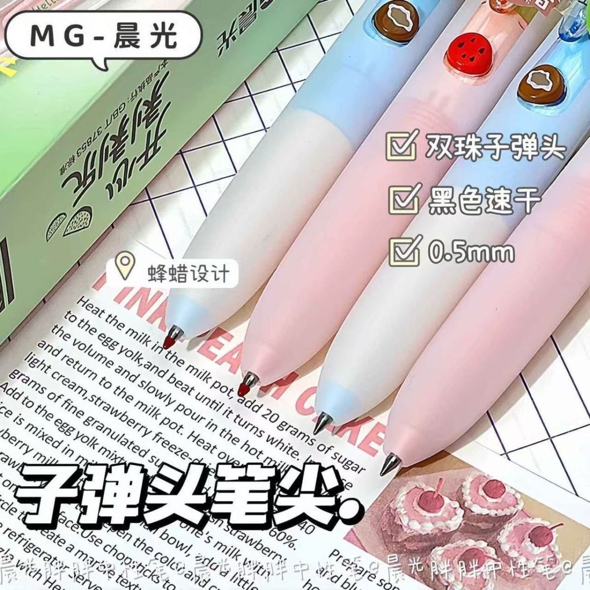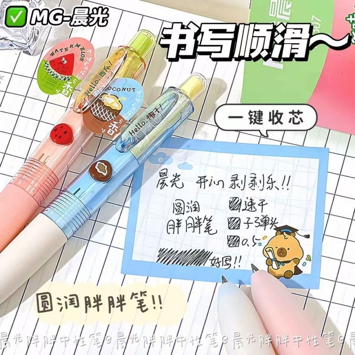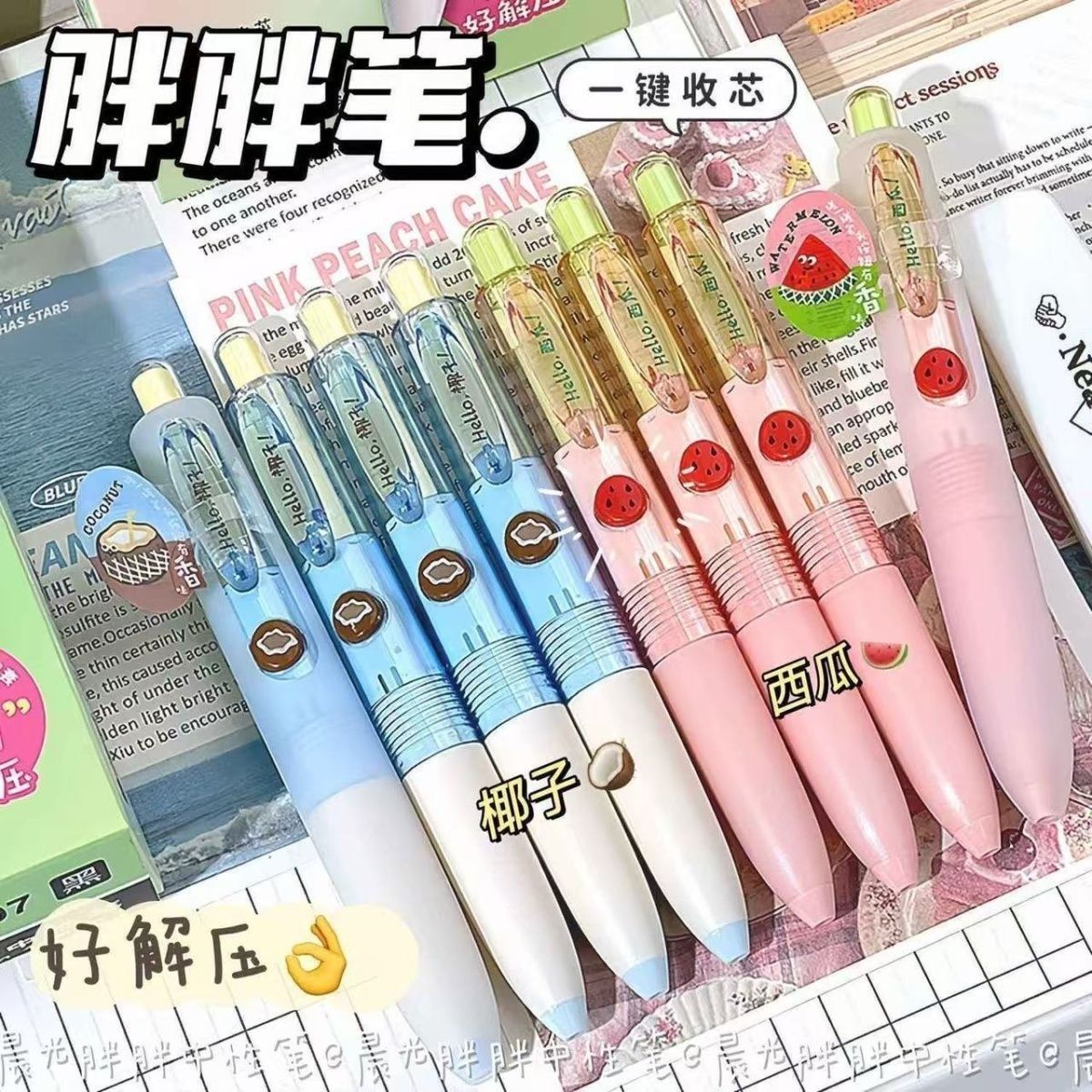 晨光开心剥剥乐按动中性笔可爱胖胖解压速干学生考试用按压签字笔