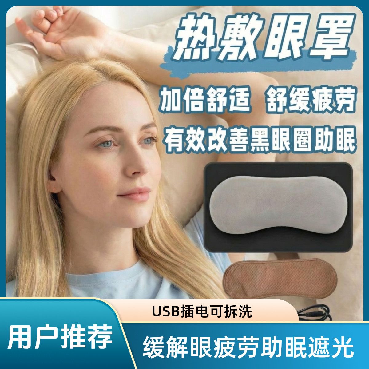热敷蒸汽加热眼罩恒温男女睡眠缓解疲劳遮光护眼插电款