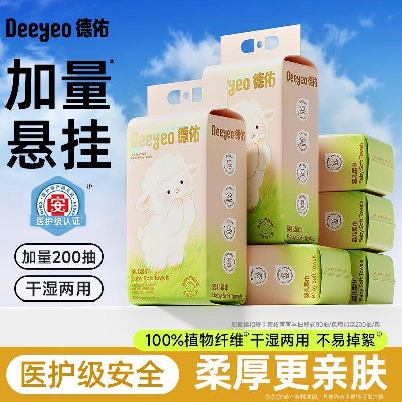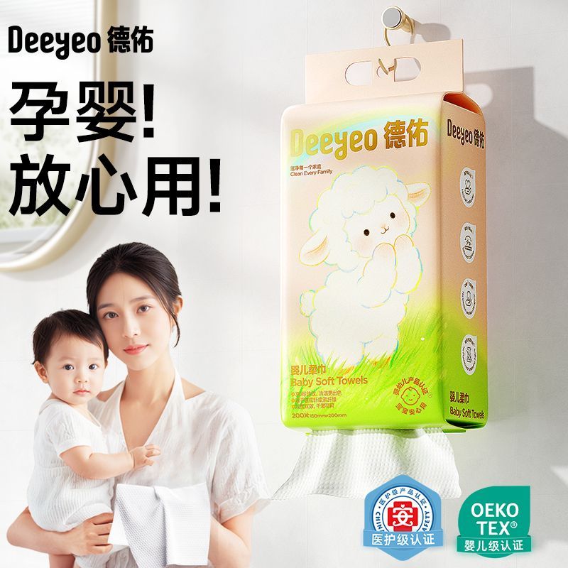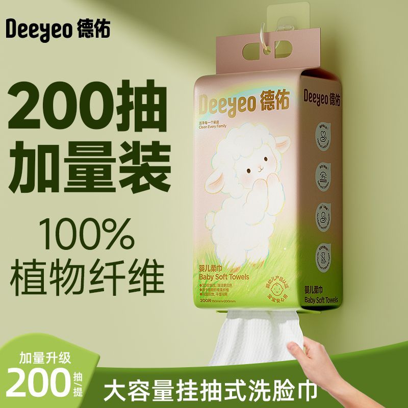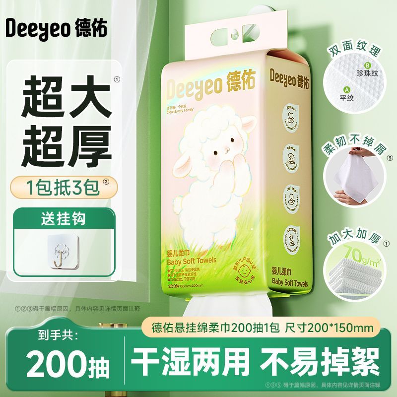 德佑悬挂绵柔巾新生儿宝宝干湿两用一次性擦脸巾加厚柔软家用大包