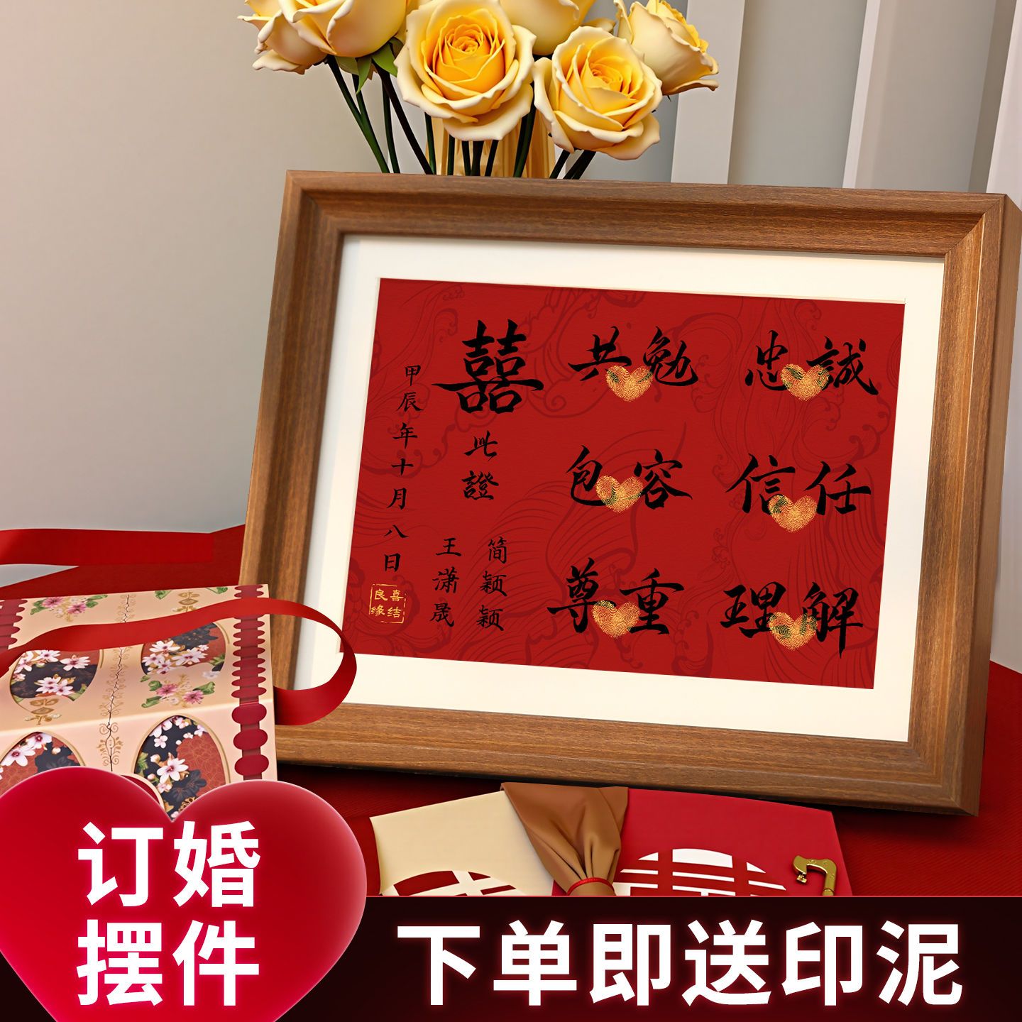 结婚订婚创意相框摆台喜庆氛围装饰床头柜纪念摆件新婚礼物送新人